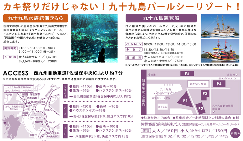 <バス>佐世保駅前から市営バス「パールシーリゾート・九十九島水族館」行きで約25分。終点下車