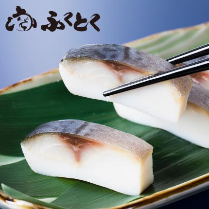 1年のうちに一番脂が乗る晩秋から真冬に獲れた肉厚の国産真鯖を使用し、ふっくら香ばしい焼き鯖寿司に仕上げ、心地よい歯触りと爽やかな後味を加えた贅沢な逸品です。