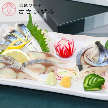 生簀からあげたばかりの活きたハーブ鯖から、創業102年の活魚料理店の料理人が一本一本手造りしたしめ鯖です。
