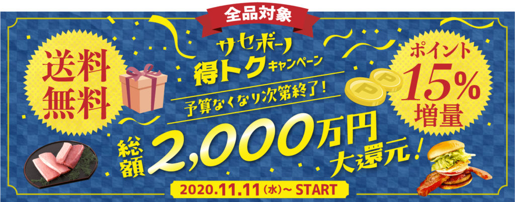 送料無料、15%ポイント還元の「サセボーノ得トクキャンペーン」を実施いたします。佐世保の特産品をお得に買えるチャンスです。
