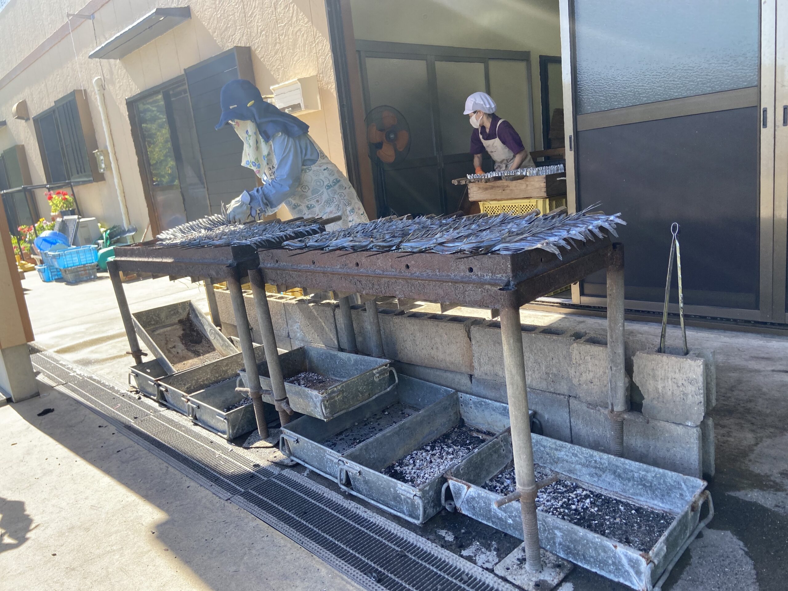 飛び魚の炭火焼等を拝見し、手間隙をかけて進める新上五島のあごだしを見学しました。