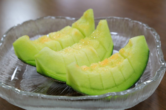 熟したアムスメロンは、芳醇な甘い香りで、甘味があり、果汁も豊富です。皮の近くまで果肉が柔らかくなるため、可食部が多いのも特徴です。食味に優れ、比較的日持ちもよく品質が安定しています。